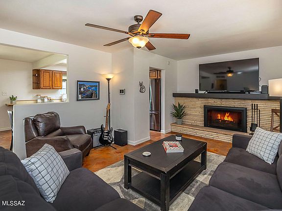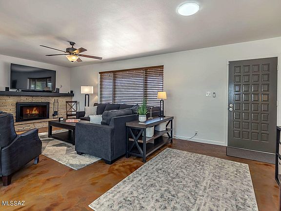 * This immaculate, completely move-in ready home is awaiting a new owner! This home has it all - newly remodeled bathrooms with new plumbing, vanities, doors, hardware and new water lines, new interior and exterior paint, ceiling fans, new electric wiring, and list goes on! Owned solar, two workshops with newly installed electric lines, up to code, fully refurbished fireplace, new Permaliner in sewer line. Easy care fully fenced yard (block wall) with heated pool, covered porch and two car carport. No HOA. No steps, no carpet! The home is conveniently located across the street from TMC, within short drive from The Loop, Whole Foods and Trader Joe's, various amenities, hiking trails and golf resorts. This one will not last! Call for an easy showing! Full list of upgrades is uploaded on MLS.