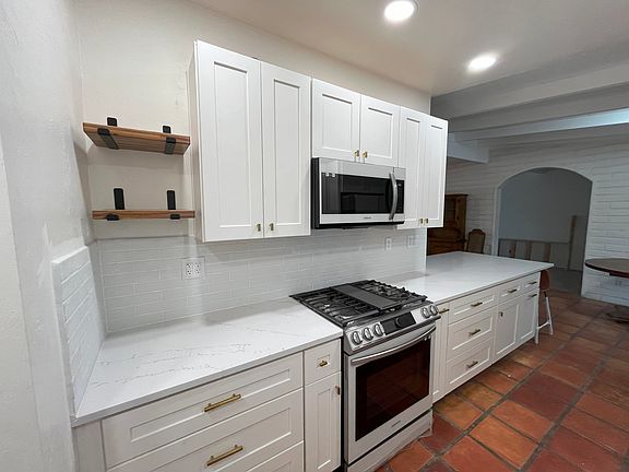 Updated and upgraded! Centrally located home featuring vaulted ceilings, fresh paint, new carpet in the bedrooms plus other nice little touches you can only find in this type of home. Fully remodeled kitchen with marble counter tops, new appliances, and loads of storage with open shelving and plenty of cabinets. Three-bedroom two bath plus den includes Saltillo tile everywhere but the bedrooms and den. HUGE yard that backs to a wash including a covered patio and gazebo for outdoor living. Close to shopping, dining, TMC, and all the cool things Tucson has to offer.
