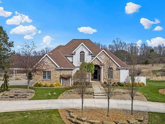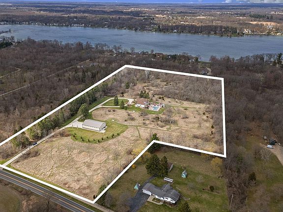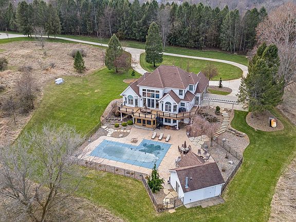 IMMERSE YOURSELF IN ABSOLUTE PARADISE WITH WORLD-CLASS LUXURY! Secluded 12+ acre estate set behind natural borders in one of Jackson Co most desired lake communities! This estate features expansive living spaces, soaring ceilings, hardwood floors, fireplace & dramatic flr to ceiling windows w/natural light illuminating the open floor plan. Gourmet kitchen, outfitted w/custom cabinetry, top-of-the-line appliances & massive granite center island. Grand primary suite. Lower level w/2nd kitn, ensuite, additional bath, gym, 3 seasons rm & entertainment space leading to extraordinary outdoor oasis-heated saltwater pool, stamped concrete patio, pool house w/kitchenette & half bath. Irrigation system, new landscaping & 48x72 pole barn-insulated, heat, AC, bath, 6'' flrs, generator, well/septic.