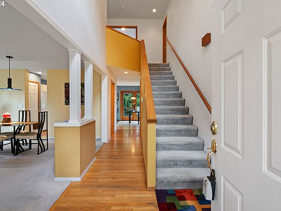 Cherished by one owner since it was built, this hidden oasis sits in one of Portland's most beloved neighborhoods. The entire property is surrounded by beautiful greenery, trees, and a thicket of rhododendrons. Ideal Hayhurst location just up the road from top-rated schools, Gabriel Park, the SW community center, restaurants, pubs, and stores in Multnomah Village and Hillsdale. Sunlight drenches most of the home thanks to large windows throughout. Vaulted ceilings in the front entry, family room, and primary bedroom add dramatic flair. Cozy gas fireplace in the family room for cold winter nights, plus A/C for scorching summer days. Large open kitchen with modern appliances, ample cabinet and pantry space, built-in desk, and double doors that open to the deck. Three spacious bedrooms and two bathrooms, and washer/dryer all conveniently located upstairs. Primary bedroom offers peace and calm at the end of the day with en suite bathroom and walk-in closet. So much storage both in a large walk-in space off of the second bedroom and under the house. Dog lovers will appreciate the fenced dog kennel right off the garage. Host unforgettable events in the park-like backyard with its own BBQ area. Just minutes to downtown and anywhere on the West Side! [Home Energy Score = 4. HES Report at https://rpt.greenbuildingregistry.com/hes/OR10215316]