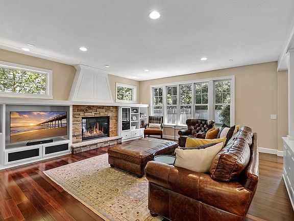 Beautiful two-story home in highly sought-after South Harriet Park! Enjoy the open flowing floorplan and natural light-filled spaces, spacious family room with gorgeous built-ins and stone-surround fireplace all looking out to the private backyard! Large gourmet kitchen featuring a coffee bar, wine storage, extra beverage fridge and walk-in pantry, informal dining area with fireplace, and formal dining room with built-in buffet and access to the patio—ideal for when entertaining guests! Upper level loft, laundry room and four bedrooms including the spacious primary suite with vaulted ceiling, spa-like bath and large walk-in closet. Expansive lower level with guest bedroom, family room with fireplace, wet bar with full fridge and heated floors; workout area and hockey shooting gallery! Additional features: main-level office, large mudroom with built-in locker storage and heated garage! Ideally located close to the creek, ECC and 50th & France.