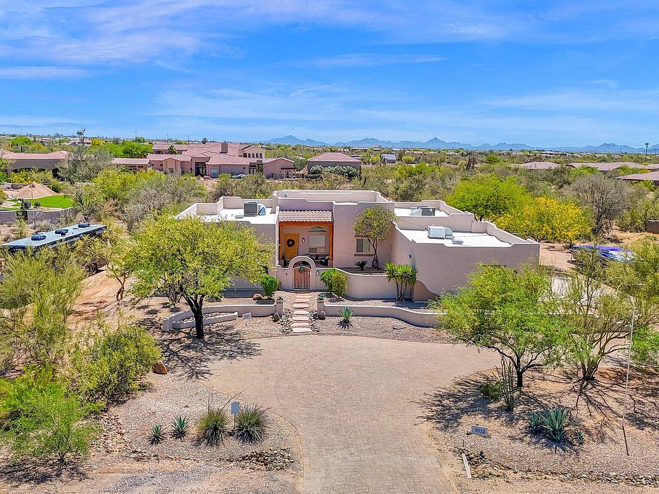 TERRITORIAL STYLE 5BR/2BTH HOME IN BEAUTIFUL CAVE CREEK! MASSIVE 1.5+ ACRE LOT W/HORSE PRIVILEGES. ENDLESS POSSIBILITIES W/THIS EXPANSIVE PROPERTY. PAVER CIRCLE DRIVE. N/S EXPOSURE. LARGE PRIVATE FRONT COURTYARD ENTRANCE. TILE FLOORING T/O EXCEPT BEDS/LIVING. SPLIT FLOOR-PLAN. PRIMARY SUITE WAS UPDATED WITH FREESTANDING TUB, REFINISHED DUAL VANITY, AND LIGHT FIXTURES. REMAINING 4 BRS SHARE A COMMON RM. POTENTIAL STUDY OR DEN. OPEN GREAT ROOM CONCEPT. BUILT-IN ENTERTAINMENT NOOK W/CABINETS. 12FT+ FLAT CEILINGS FOR A NICE OPEN FEEL. SPACIOUS KITCHEN W/ NEWLY REFINISHED CABINETS. GRANITE COUNTER TOPS/SLAB BACKSPLASH, POT FILLER, STAINLESS STEEL APPLIANCES, WALK-IN PANTRY, & BREAKFAST BAR. RECESSED LIGHTING. UPDATED LIGHT FIXTURES/FANS T/O. BEAUTIFUL PLANTATION SHUTTERS/CUSTOM BLINDS. NEW LEVER STYLE DOOR HARDWARE. NEW INTERIOR PAINT. OVERSIZED LAUNDRY RM. W/TONS OF STORAGE SPACE. UPPER/LOWER CABINETS WITH GRANITE COUNTERS/SLAB BACKSPLASH. GAS WATER HEATER RECENTLY REPLACED. REAR COVERED PATIO W/EXTENDED DECK, SPIRAL STAIRCASE TO ROOFTOP DECK. MOUNTAIN VIEWS! HOME CONNECTED TO CITY SEWER. OVERSIZED 3 CAR GARAGE JUST PAINTED & FRESH EPOXY PAINTED FLOOR. ENJOY DOWNTOWN CAVE CREEK EATERIES. POPULAR HIKING/BIKING TRAILS JUST MINUTES AWAY!