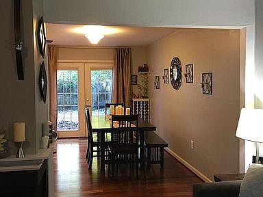 Spacious 2 bedroom townhome in Harper's Glen community. This home has all the upgrades: Hardwood floors throughout, granite countertops, stainless steel appliances, ample counter space & cabinet space, pull up chair at the breakfast bar, and plenty of storage space & living room with wood burning fireplace. Upstairs has 2 bedrooms; large master bedroom with access to a bathroom. Outside: Fenced in backyard with paver patio, great for outdoor living as well. Renter responsible for gas and water. Unassigned free parking. No smoking. Email first for information. No Basement. No pets allowed.