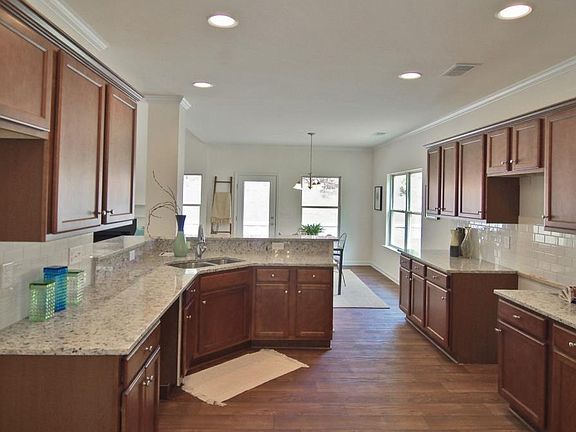 This the Shelly floor plan featuring an owner's suite on the main level & located on a beautiful level corner lot w/2-car side entry garage. A Brick accented covered entrance opens to separate dining room w/coffered ceiling. A stunning kitchen w/Espresso cabinets & granite countertops, stainless appliances opens to the great room w/gas log fireplace. A perfect covered patio extends for outdoor living. 3 additional bedrooms, huge media room & loft space upstairs. Interior photos are of a similar home.