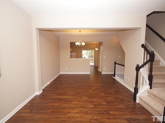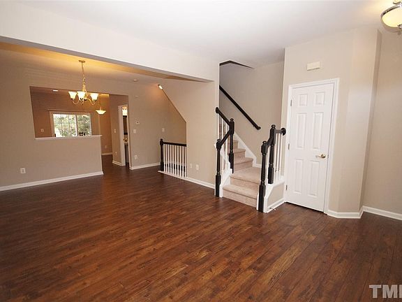 3BR/3.5BA w.Finished Basement. Upgrades Galore! New Hardwood-style Flooring, Carpet/Vinyl, Granite & Stainless Kitchen, Freshly painted interior in warm neutral tones. New lighting/fixtures/mirrors. Two BRs on 2nd Flr, both could be Masters. Lower level has spacious Family Rm or Den, plus a Bedroom & lovely updated Bath. Backs to Wooded Common Area! Private Patio. Pool & play community in super convenient location close to Umstead, RDU, Crabtree & everything. Move-In Ready and will surely go fast!