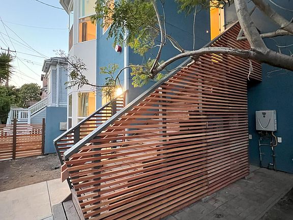 Very sunny and airy 1,200 sq ft upper unit in a 2-unit building. Brand new construction (built 2023), 4 bedrooms & 2 bathrooms including a master suite. Large windows in all rooms bring in lots of natural light. High ceiling height of 9'-4" throughout the entire unit. The living/ dining room has a large bay window with classical trim detaling and a functional art rail. The kitchen has a tile backsplash, large granite sink and modern quartz countertops with stainless steel appliances including a dishwasher, a dedicated range hood and a full depth refrigerator. Lots of outlets throught the apartment, with TV height outlets in the living room. All bedrooms have a 6ft wide closet and solid core wood doors for better sound isolation. Bathrooms have full height tile surrounds, black and gold accessories and dimable light switches. The unit comes with central heating and air conditioning, in-unit laundry, gas appliances, solar panels, fire sprinklers for safety and thoughtfully designed layout and modern finishes that cater to a wide variety of needs. Located on a quiet street, yet walkable, close to freeways, Public transit, shopping, dining and entertainment. - Cats welcome with a pet fee of $50/ month. - Tenant pays for PG&E and water, Owner pays for trash. - Available Sept 1 - First month's rent and security deposit due upon move-in. - No smoking. - Street parking. - Bike locker. - 1 year lease term, with month to month term afterwards - Qualification subject to credit and background check, income requirements of 3x monthly rent. - All tenants over 18 must sign the lease.