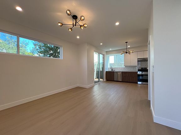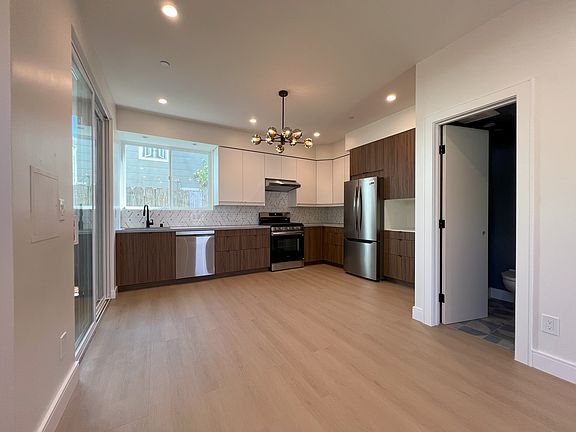 Newly constructed townhome (finished construction August 2025). Bright and airy 900 sq. ft. back unit in a 2-unit building. 2 bedrooms & 1.5 bathrooms including a master bedroom. Large windows in all rooms bring in lots of natural light. High ceiling height of 9'-0" throughout the entire unit. The living/ dining room has a private fenced in deck area perfect for Barbequing or working outdoors. The kitchen has a tile backsplash, large black quartz sink and modern quartz countertops with stainless steel appliances including a dishwasher with three racks, a dedicated range hood and a full depth refrigerator. Lots of outlets throughout the apartment, with TV height outlets in the living room. All bedrooms have a 6-6"ft wide closet and solid core wood doors for better sound isolation. Bathrooms have full height tile surrounds, black accessories and dimmable light switches. The unit comes with 3 zone mini split heating and air conditioning, in-unit laundry, gas appliances, solar panels, fire sprinklers for safety and thoughtfully designed layout and modern finishes that cater to a wide variety of needs. Located on a quiet street, yet walkable, close to freeways, Public transit, shopping, bike trails, dining and entertainment. - Cats/Dogs welcome with a pet fee of $50/ month. - Tenant pays for PG&E and water, Owner pays for trash. - Available Sept 1 - First month's rent and security deposit due upon move-in. - No smoking. - private dedicated parking with EV charging. - Bike locker. - 1 year lease term, with month to month term afterwards - Qualification subject to credit and background check, income requirements of 3x monthly rent. - All tenants over 18 must sign the lease. - One year lease, then month to month - Tenant pays for electricity, gas and water - Garbage is provided - EV charging and parking on site - No smoking - Small pets are allowed - Sonic or ATT providers for wireless (tenant pays)