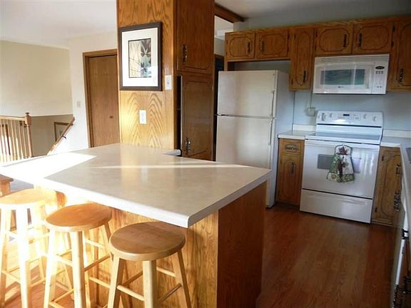 Property Description Like New! Wonderfully cared for split level home with 4 bedrooms, 2 baths, many updates including mechanicals, roof, siding, windows, carpet, garage doors, water heater and more. Open floor plan with kitchen snack ledge and informal dining area, lowler level family room with woodburning fireplace, hardwood floors, lots of storage and closet spaces, generous bedroom sizes, delighful entertaining deck area, oversized garage and more surrounded by gorgeous yard with lots of privacy. Close to schools and park.Great Neighborhood!