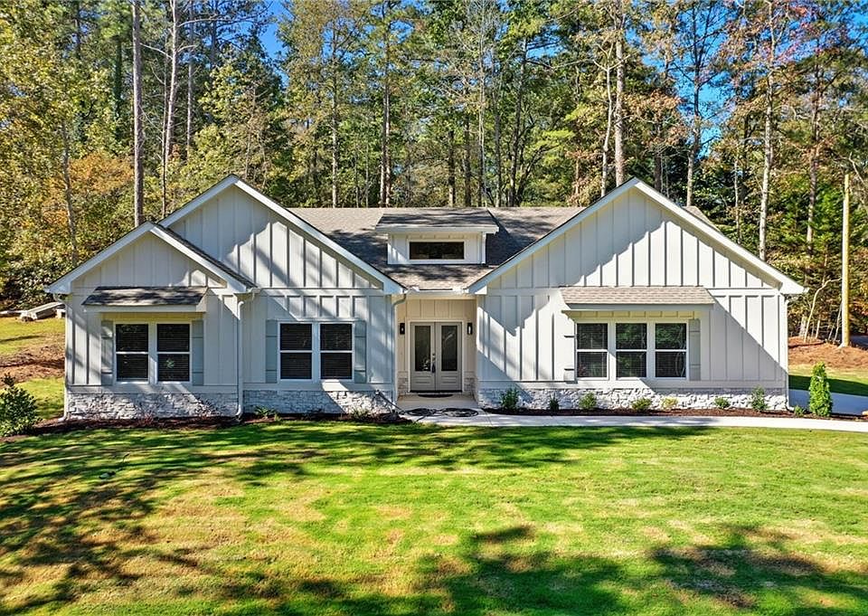 Discover this stunning new construction masterpiece in prestigious Fairfield Plantation! One level living at its finest in a highly sought after guard gated community with resort-style amenities. The curb appeal of this professionally landscaped corner lot off a quiet cul-de-sac will immediately catch your eye. As you walk through the double front door and enter the oversized foyer you’ll quickly realize this home isn’t like the others. Real hardwood floors throughout, stained beams and designer lighting and paint colors make it clear no detail was overlooked. The foyer leads into the spacious family room with vaulted ceiling, lots of natural and recessed light and a fireplace with awe-inspiring woodwork. The main living spaces flow seamlessly so it’s ideal for entertaining family and friends. The dining area also leads out to the back patio, so grilling is a breeze. The chef’s kitchen has abundant cabinet space and work areas with an oversized island and walk in pantry. The exotic granite and vent hood give it a classy touch. Heading to the garage off the kitchen you’ll notice the handy bench area for taking off shoes across from the large laundry room. The other side of the home has three large bedrooms all with hardwood floors. The master bedroom has a tray ceiling with a breathtaking en-suite bathroom. The beautifully tiled walk-in master shower has a slipper tub at the back and a transom window to let in natural light. The walk-in closet is enormous. The two secondary bedrooms share a full bath with a tiled tub shower combo. The world class amenities in this exclusive gated lake and golf community with country club and two restaurants include two pools, tennis, pickleball and basketball courts, playground, a private marina, beach and walking trails. Conveniently located close to I-20 and Hartsfield International Airport. You’ll be proud to call it home.