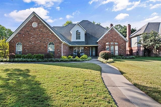 Spacious on corner lot offers something for everyone! Entertain or enjoy sports in the backyard complete w/Gunite pool, basketball court, storm cellar & a cvd patio. The large granite Kitchen opens to family rm w/island, breakfast nook, serving/dining bar & a secluded planning desk. Family w/FP & wet bar + Formal living & dining. The master suite + half bath are down; three large beds, each w/a walk-in closet & access to a full bath + office & game room upstairs. Great location - near the Creek Turnpike.