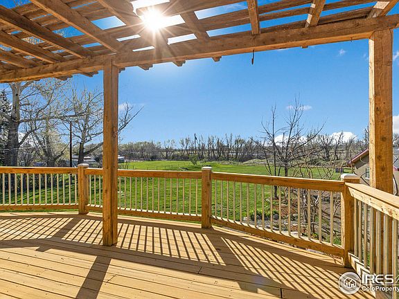 Wonderful Boulder home on 1.46 acres w/majestic pines, lake views, and new septic being installed! Pleasant, very private lot, zoned rural residential allowing 2 horses or more smaller animals! Nearby open space trails, yet just 12 minutes to downtown and in Boulder Valley School Dist. 720 sq ft garage with 220 V service, & built-in shelves provides ample space for all your toys or makes a perfect workshop. This home boasts a light-filled, open floor plan, fresh interior paint, hardwood floors, newer windows, a gas fireplace, and an expansive deck & lower patio. The sunny, updated kitchen features 42-inch Maple cabinets, tile backsplash, GE Profile stainless gas range & dishwasher, LG stainless French door refrigerator, roomy peninsula & pendant lights. Enjoy views of Juhl Lake right from your kitchen sink. The kitchen seamlessly flows into dining rm & spacious living rm w/gas fireplace. Hardwood floors extend throughout main living areas, kit & primary. The primary BR offers a walk-in closet, built-ins, ceiling fan, Shoji shades, & sliding glass door to deck where you can unwind amidst the serene surroundings. Generously sized secondary BR has bay window & 2 closets. Charming flagstone pathway leads to the front door alcove, serving as an airlock entryway or a lovely spot for plants. Descend the stairs to the walk-out lower level, rec room w/wood flooring, a 3rd bedroom with LVP flooring & fully above-grade windows, full BA, & a laundry room with a front-load Kenmore Elite Washer/Dryer. A glass door leads out to an inviting patio. Fantastic studio suite w/oversized slider to patio, LVP floor, ensuite 3/4 bathroom, & kitchen area versatile living space as 4th BR, guest suite, or studio apt. Great, fully irrigated backyard w/12 zones for yard, garden or beds, plus 4 apple, 1 plum & 1 peach tree. Whiterock ditch borders yard. Easy access to trails plus Boulder amenities, & shopping. Move in right away or expand to create your dream home on this fantastic lot!