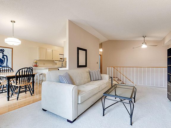 Enjoy low maintenance living in 2 bed, 2 bath, 2 car garage townhome located in the desirable Beachside neighborhood! Spacious and bright open floor plan, featuring vaulted living room, extending to dining room and kitchen with hardwood floors and stainless steel appliances. Walk-in California closet in master bedroom. Cozy walk-out lower family room with fireplace and custom wood shelving. Meticulously maintained and updated with new downstairs carpet and custom shelving (2023), water heater (2022), attic insulation (2019), water softener (2018), air conditioning unit (2017) and furnace (2012). Located on walking paths with driveway shared by only one other townhome, providing more outdoor space and privacy than many homes in the neighborhood.