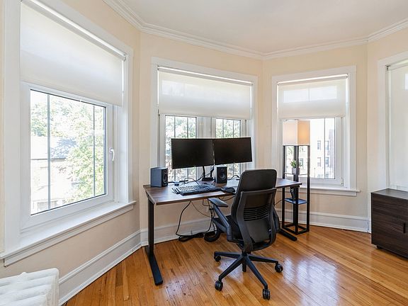 Location, location!  Conveniently situated within walking distance of the University of Chicago campus, this light-filled condominium offers two bedrooms, formal living and dining rooms and a charming sunroom overlooking Dorchester Avenue. Featured within the gracious layout are hardwood floors, vintage woodwork, and a decorative fireplace surrounded by bookshelves. The gracious foyer is situated between the large living room and the formal dining room. The primary bedroom has paned glass doors that lead to the sunroom or office. There is currently a wait list for a garage space; when available the cost is $139/mo.  Washer and dryer in the basement. Professionally managed and a well run association. This sunny condo is near the lakefront, Metra transportation, shopping, and all the amenities Hyde Park has to offer!