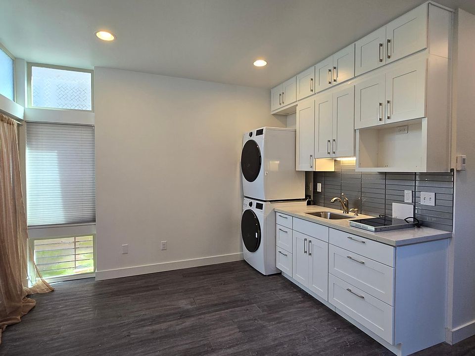 Bright Mother-in-law: Separate entrance, freshly painted, like-new appliances (fridge, in-unit washer & dryer, combo microwave/air fryer, 2 burner cook top), quartz countertop, full bath w/ bidet, 8ft+ ceiling, semi-private patio. Owner lives on-site.