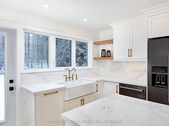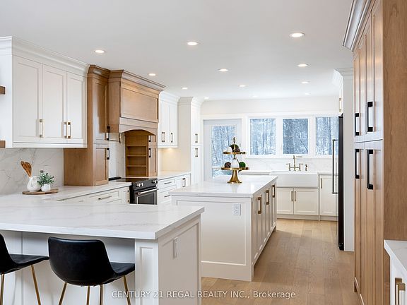 Experience luxury living in this stunning 5-bedroom estate offering over 6,000 Sq ft of elegance and comfort! This beautifully designed home features a show-stopping chefs kitchen complete with quartz countertops, a spacious island, built-in refrigeration drawers, pot filler, and premium finishes throughout. Generously sized bedrooms boasts custom walk-in closets, while spa-inspired bathrooms offer heated floors for year-round comfort. Endless upgrades include sleek wall paneling, modern pot lighting, and striking exterior glass railings that elevate the homes sophisticated style. Nestled on a picturesque property with a tranquil creek and pond at the front, this home offers breathtaking views and serene surroundings. A rare opportunity. Come fall in love with this exceptional property today!