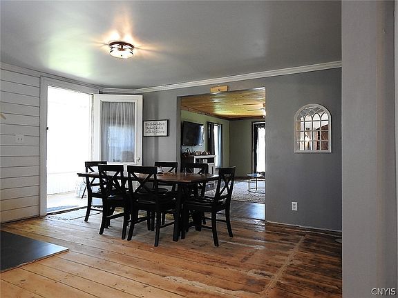 3 bedroom, 2 bath Country home just outside Lowville. One will love the all the old Character this home has to offer. HGTV move over this girl is looking good! Starting with the original wide plank floors, all the natural light, the size, the summer porch, the potential and then there's the garage! The garage is 32 x 40, so much space! Oh yeah the Location is pretty darn nice too! Much has been completed here as far as updates as you can see. They have been ongoing from day 1, and the list is getting shorter. New lighting, New trim work, Painting, sanding, Bathrooms, Sheetrock etc. Covered patio area, back deck, enclosed sunporch, and a large enough lawn. The back entrance has a mudroom/office space. Pantry with oversized barn door sliders, new laundry area, large living room and dining room with open concept feel straight from the kitchen. Just an overall cute farmhouse on the hill.
