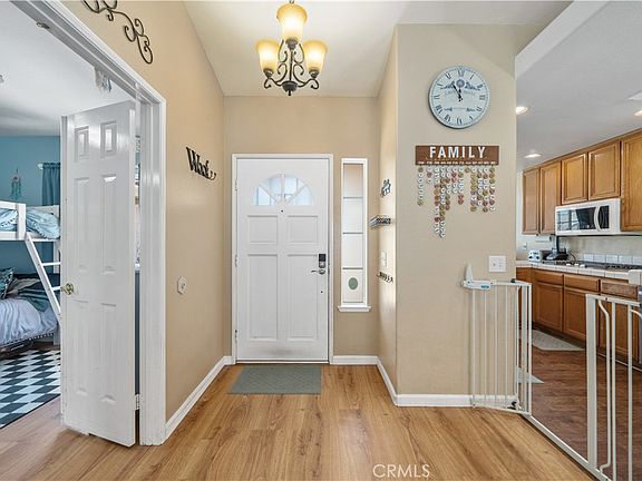 Discover coastal charm in this beautifully maintained single-level home nestled in the desirable Guajome Meadows community of Oceanside. Enjoy direct access to a bike trail leading to the ocean, nearby parks, and a fishing lake—just a few of the perks that make this neighborhood so special! This spacious residence offers 4 bedrooms, 3 bathrooms, and 2,010 sq ft of living space on a generous 10,170 sq ft lot, perfectly designed for relaxed California living. The open-concept layout highlights a modern kitchen with white appliances and a charming garden window that looks out to the fruit garden where you'll see top-producing apple, fig, two avocado, pomegranate, navel orange, blood orange, tangelo, and grapevines. The kitchen seamlessly flows into the family and dining areas—ideal for entertaining or everyday comfort. Beautiful wood flooring guides you to the west wing, where you’ll find the primary suite with an ensuite bath, step-in shower, and walk-in closet, plus two additional bedrooms, a full hallway bath, and a convenient indoor laundry room. A cozy fireplace warms the formal living room, creating a welcoming entry, while the 4th bedroom with private bath offers wonderful flexibility for guests, in-laws, or a home office. Step outside to a low-maintenance backyard featuring plenty of space to BBQ, relax, or work in the accessory shed. The three-car garage provides built-in cabinets and a workbench for extra storage and projects. Located just minutes from beaches, shopping, dining, and top-rated schools, this home combines convenience, comfort, and the best of Oceanside living—all in a quiet, established neighborhood