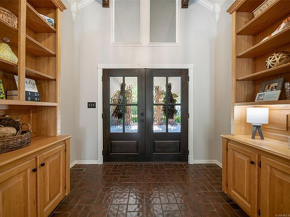 Quiet estate style living on acre lot with saltwater pool. NEW ROOF! One level with lots of updates. True mother-in-law plan. Vaulted ceilings, beams, beautiful views, wonderful kitchen w/quartz, gas cooktop, 3 full size ovens, freshly painted throughout. Versatile floorplan, well maintained! Spacious Master with sitting area & separate closets. Fantastic entertainers backyard! Outdoor living w/Fireplace and amazing pool! Complete privacy, SS on well water! Jenks SE schools.