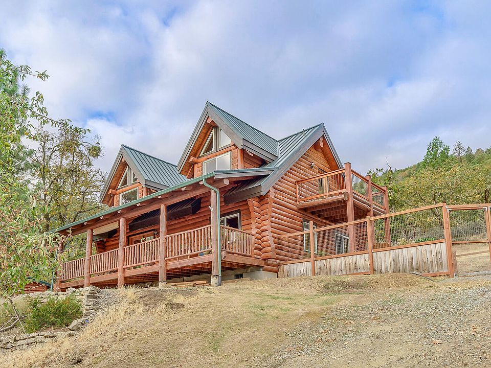 With views that stretch to Mount McLoughlin this warm, inviting and meticulous maintained Log house will be easy to call home! Nestled in the foothills just outside of Central Point you can enjoy the peace, and quiet while only being 3 miles from the I5 on ramps. Two lower level bedrooms and loft with office space and the master bedroom are updated and you will enjoy the rustic-modern charm which is not easily replicated. The property also features a solar powered artist studio that is crafted out of reclaimed hard woods from around the world that will help inspire your creative side. The detached garage has been converted into a workshop, darkroom and storage which can easily be converted back, or build your own dream shop on the lower flat that has plenty of room for horses or other animals. A small greenhouse for the hobby gardener has room to expand on this sunny hillside. Property also touches BLM lands giving you room to roam.