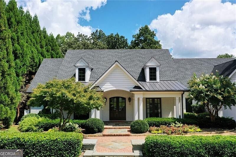This home was beautifully renovated by architect Ben J. Green. Gorgeous white brick traditional home with a welcoming front porch features a formal dining room, formal living room with fireplace and French doors leading out to the covered porch with fireplace and backyard access, plus a handsome study with built-in shelving. Inviting primary suite on the main level includes a separate tub and walk-in shower, spacious vanities with storage, plus dual walk-in closets. Beautifully light-filled kitchen opens to a breakfast area and keeping room with fireplace, leading to the conveniently located laundry room. Upper level includes 3 en-suite bedrooms and 2 additional bonus rooms. Fully finished terrace level with bedroom, bathroom, spacious recreation room area with fireplace, kitchenette, and walk-out access to the covered patio area with fireplace, pool and backyard. Immaculate landscaping surrounds the home, enjoyable from the spacious covered terrace overlooking the saltwater pool, hot tub and lovely level backyard. Attached 2-car garage plus guest parking. Within walking distance of Holy Innocents, and conveniently located near 285 with easy access to all that Sandy Springs, Buckhead, Vinings and greater Atlanta have to offer!