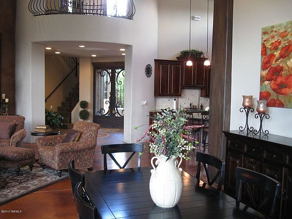 For more information on this property, contact the Listing Agent, Steve Long at (520) 918-5172 or SteveLong@LongRealty.com. Majestic and prestigious 4,557 s.f. 5br/6ba Kevin Howard designed Mediterranean home in Dist 16 on .83 acres w/ great mountain views! Enter through a gorgeous professionally landscaped courtyard. All bedrooms & living areas are on the main level, with a den on the upper level (upstairs closet plumbed for another bath). Formal entry; 18' soaring ceilings; majestic FP; open kitchen w/granite counters, solid wood cabs & Viking fridge/freezer; elegant master w/fireplace & office; extensive patios with built-in bar-b-que & gas fire pit. Separate heated/cooled exercise/game/rec/storage/studio/workshop room adjacent to the garage (could be converted to 3rd garage). Extensive custom ironwork compliments this exquisite home!