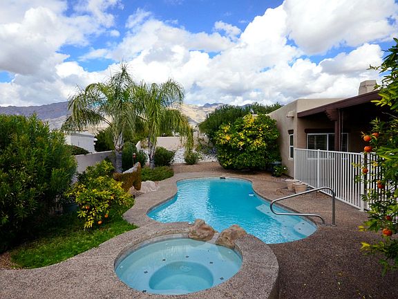 For more information on this property, contact the Listing Agent, Liz and Tom Peckham at (520) 918-1686 or LizandTom@LongRealty.com. Premium view lot in small private gated subdivision.City and Mountain views. Bright 4 bed/3bath open floor plan. Large master suite with walk in shower and garden tub, Separate 4th bedroom with bath, ideal for guest, mother-in-law or teenager. Kitchen has newer appliances, gas stove. Spectacular backyard with mature citrus trees offering privacy and abundant fruit. Covered patio with new pavers. Sparkling pool and spa with aggregate concrete deck. 3 car garage with plenty of storage. District 16 schools. This meticulously maintained Doucette home is show ready.