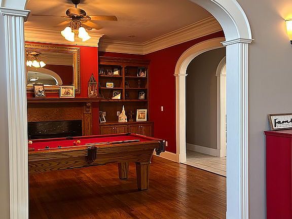 This home features hardwood flooring, ceramic tile, and carpet. Corian counter tops and oak cabinets by Ford Brothers are featured in the kitchen. Stainless appliances were installed in 2022. Arched openings and columns make the open floor plan very accommodating. There are 2 bonus rooms upstairs that are 600 square feet each that could be finished very economically. This home has a 3 car garage with an outside storage room. There is a 20x40 salt pool just off the screened in back porch.