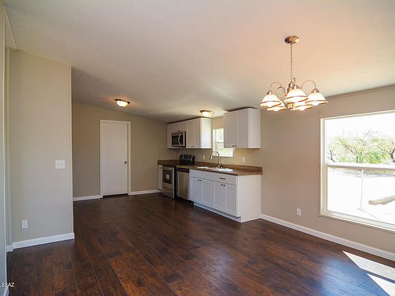 Freshly updated manufactured home. Located in scenic South West Tucson location. New custom interior and exterior paint. A wonderful living room with light filled living. Rich wood laminate flooring. New carpet and padding in living areas and bedrooms. Stainless steel appliances. Split floor plan. Walk in closet in master bedroom. Dual sinks in master bedroom. Wonderful lot with sunset and mountain views. On approximately 3 acres of land. This home is shows beautifully.