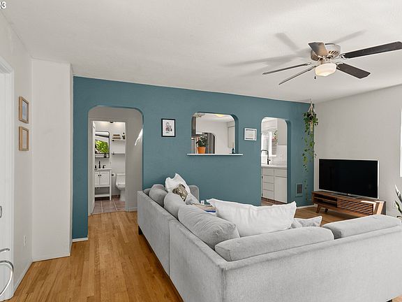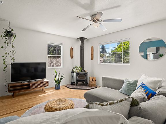 This charming Brentwood-Darling cottage effortlessly combines vintage appeal with Scandi-modern updates. This sweet single-level home features refinished and new hardwood flooring throughout the main and bedroom, and fresh tile flooring in the kitchen and bathrooms. Thoughtful restoration efforts have resulted in a lovingly upgraded interior, complete with cozy updated wood-burning stove. Kitchen has classic archways, stainless appliances and an induction range, plus an airy vaulted ceiling complete with skylight and mini-split! The primary bedroom has abundant natural light and full-sized sliding glass doors that lead to the private backyard. Spa-like remodeled bathroom features heated floors and a walk-in shower. The detached remodeled flex space could be a perfect home gym or office. Unwind in the freshly landscaped backyard oasis, with palm trees, boardwalk decking and pavers, a pizza oven off the patio area, and last but not least, your own private hot tub club! Sizeable driveway with ample room for RV parking, and detached garage perfect for projects. A Home Energy Score of 9 makes this the perfect cool & cozy place to call home! [Home Energy Score = 9. HES Report at https://rpt.greenbuildingregistry.com/hes/OR10188723]