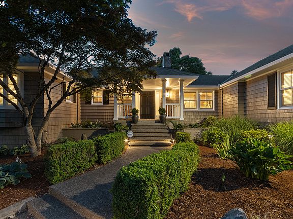 Welcome to this meticulously remodeled 1945 gem, nestled on a generous .46-acre lot is just 200 yards from the 3rd green of the Portland Golf Club, 2.2 mile drive to OES and 1 mile to Jesuit High School. Boasting 3,643 sf of living space, this 4-bedroom, 3-bath home is a harmonious blend of classic charm and modern luxury. The main level, adorned with rich hardwood floors, houses the Primary Suite, which offers a serene retreat. This suite includes dual sinks, a walk-in closet, a walk-in shower, and a separate soaking tub. Step out onto the deck from the primary suite to enjoy views of the beautifully designed backyard. Also featured on the main floor are two additional bedrooms, a small office, a full guest bath, and a formal dining room. Step inside to find a Chef's kitchen that will inspire your culinary adventures. Equipped with dual convection ovens, a cook island with downdraft, and dark cabinets, this kitchen also features an eat bar and a Sub-Zero refrigerator. The expansive living area, with access to a fully covered back deck, seamlessly connects indoor and outdoor living. The downstairs is a haven for entertainment and relaxation, featuring a full bedroom with a shared bath, an additional living room with patio access, a game area, and a spacious storage area. The backyard is an oasis, featuring a water feature, raised garden beds, a firepit, and gravel pathways that create a Zen-like atmosphere. The original horse stall, now a garden shed, adds a touch of history, while the attached shop offers additional utility. A car enthusiast's dream, the 4-5 car garage is the star feature, offering ample space for a collection of vehicles. It includes a full wall of cabinets and an extra work area, perfect for any hobbyist. Updates include a 2019 roof and 2015 dual-pane Milgard vinyl windows, ensuring comfort and energy efficiency. Perfect for those with a love for automobiles. Plenty of room for RV or boat storage. Come and see all the remarkable features!