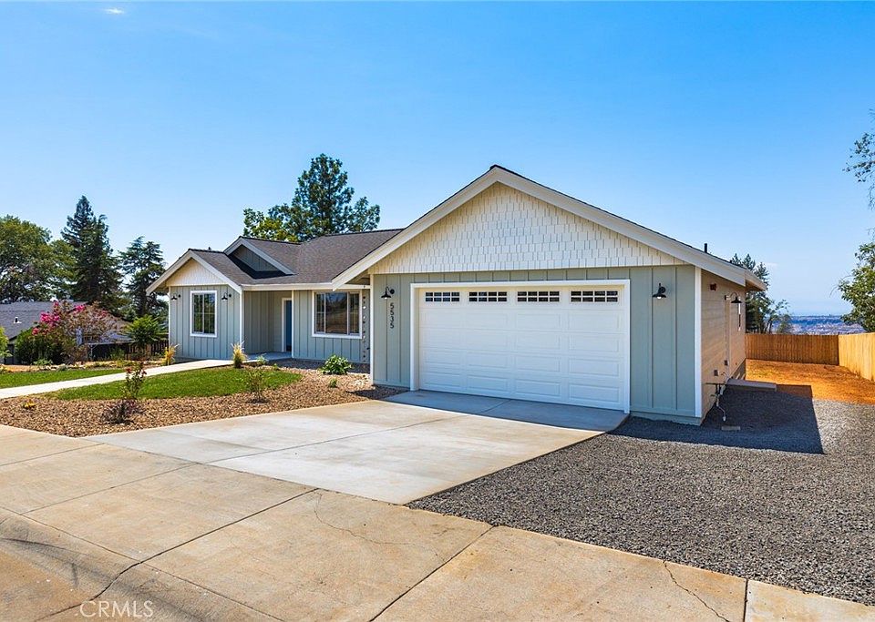 ENJOY THE SWEEPING VIEW ! of the Butte Creek Canyon & Coastal Mountains from this quality built brand new home. Located just off the Skyway at the first traffic light as you enter Paradise making it an easy commute to Chico. It has all the I wants for today’s living. An open floor plan with the spacious living room open to the gorgeous kitchen featuring a large island, quartz countertops, premium KitchenAid Gas Range, Dishwasher and Microwave and stunning upgraded cabinets with soft close drawers, spice drawer pull-out and a trash & recycle center. This amazing kitchen also boast a Pantry and USB charging station. In the Dining Room there is a picture window for natural light and beautiful light fixtures. The lovely Main Bedroom has a very large walk-in closet and attached Bath featuring quartz countertops, dual vanities, Kohler toilet, custom tile shower and a towel warmer. On the opposite side of the home there are two good sized guest bedrooms and a full bath. Laundry room with storage cabinets and electric or natural gas hook-up for the clothes dryer. This special home has a tankless water heater with recirculating pump, whole house fan, high efficiency windows, R-23 wall insulation and decor light switches. Oversized totally finished garage with epoxy garage floor and Tesla Electric Vehicle charger. Relax on the composite back deck with a canyon and sunset view. Landscaped front yard and fenced back yard plus access to the back yard from both sides of the house with room to park your RV.