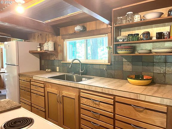Craftsman upgrades to this adorable, cozy Forest Service Cabin on a large .35 acre lot with sounds from the beautiful McKenzie River. Just a short walk down a pathway brings you to the river's edge. Upgrades include new perimeter 2' x 12' Pressure Treated skirting, 22 double pane vinyl windows, 9 skylights, two of which are operable, engineered Oak flooring, custom wood interior doors, vinyl entrance door, upgraded electrical system and plumbing system. Kitchen features custom hardwood cabinets and tile. 50-gallon water heater. Bathroom addition includes a 5 ft walk-in tiled shower, skylight and radiant heated floors. Trex decking, hot tub and rebuilt screened in porch. New metal chimney. Newer PVC membrane roof, pressure treated facia and new gutter system. Two outdoor faucet heads. Newly planted pine trees. Perfect vacation getaway for family and friends to enjoy year-round. Buyer must be approved by FS, annual fee $ 4,292.00.