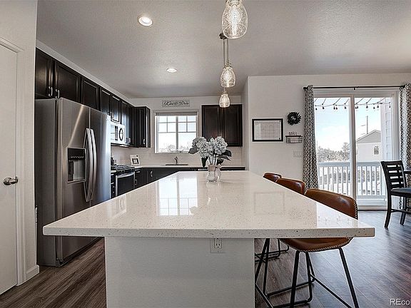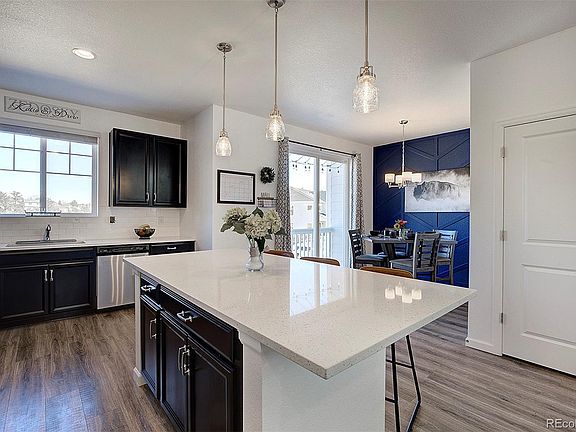 This 2 Bedrooom 3 Bath townhome in Founder’s Village was built in 2021. Still like new with a single owner. This unit has everything you need! Open floor plan with large kitchen island, dining room with great views of the open space/trail system (balcony string lighting included). Upstairs primary bedroom with large walk in closet, bathroom suite, also has views of open space. Secondary works great as an office with queen-size built-in Murphy Bed as needed for guests with an ensuite ¾ bath! Laundry closet outside bedrooms for easy access. Oversized garage great for storage. Location is central to many community assets including the outstanding Mitchell Creek Trail system, community pool, parks, baseball field, pickle ball, elementary and middle schools and more! Close to many amenities, downtown Castle Rock and I-25. Home has been exceptionally well maintained with fresh paint in areas. Optional items for purchase include kitchen bar stools, freezer in garage and large full length mirror in primary bath. It’s move in ready for you to call HOME!