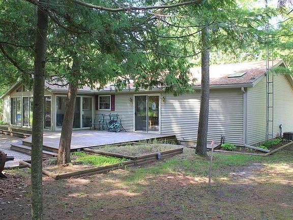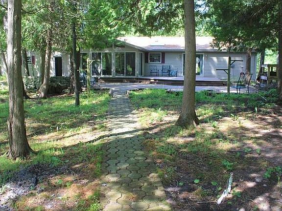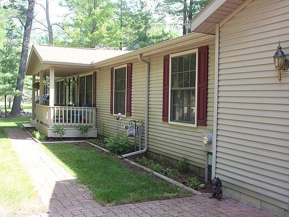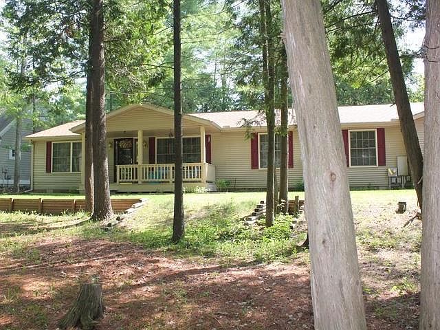 Beautiful setting for a one level 3 bedroom, 2 bath ranch with generous sized rooms for comfort living is an upscaled manufactured home, all drywalled and many high end features. Spacious kitchen with breakfast nook, island, skylights, pantry, open dining room with built in curio/china cabinet, Corian counter tops and plenty of storage. Inviting living room beautifully decorated and open to den/bedroom. Master suite has his/hers closets, garden tub, shower and dual vanity sinks and linen storage. Large laundry room off garage with lots of storage. Home sits on 2 lots near #1 tee box and just under 1 acre with brick paver driveway and walkways all with a beautiful serene landscape and gardens to enjoy. Super neat and clean Epoxy floor large garage with custom storage, a workshop with golf cart door. Many extras and a 3 season sunroom which opens to a large deck for relaxing and entertaining. A MUST SEE! Ownership gives access to all of Sugar Springs amenities.