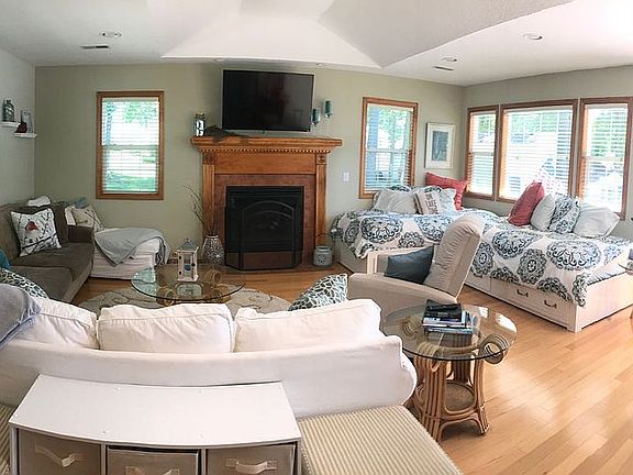 This beautiful well-cared home with three bedrooms and two additional rooms used as bedrooms (they just don’t have permanent closets) Home can sleep 14 with plenty of space to spare. Updated kitchen with center island. House sits on a cul-da-sac lot on the east side of Big Long Lake. The home features an open concept on the main floor with a great room with vaulted ceilings, kitchen, and den all overlooking the view of the lake. Enjoy the heatalator fireplace on a chilly fall weekend. The spacious master bedroom and second bedroom upstairs both have king size beds with additional space for bunks or children's bed and have spacious closets. Third bedroom is on main level. The wrap-around deck is composite decking and maintenance free. Completely re-decorated and painted along with new flooring, carpet & Luxe vinyl plank in laundry/mud room expansion. Lot has invisible fence and gated dog run and plenty of oak & hickory shade trees. Detached 2-1/2 car garage large enough for your boat and water toys storage along with workshop and separate man cave. DNR permitted dock space with new aluminum pier in 2017. New metal roof in 2018. Enjoy the sunsets from the your large deck or relax by your firepit or swing in your hammock between the trees. Big Long Lake is one of the top cleanest lakes in IN and is glacially made, offering 365 acres of clean fresh water and is an All sports lake to enjoy skiing, tubing or cruising from sun-up to sun-down. Dock the boat in for pizza and a drink at the Shady Nook restaurant which is right on the lake. Home is well insulated and used all-year around. Enjoy time in nearby LaGrange & Shipshewana or hunt at Pigeon River Fish & Wildlife area which is just 15 minutes up the road.