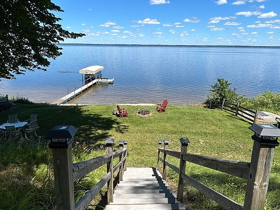 nearly new boiler system. At the lakeshore is a firepit, grassy area for lawn games and a wonderful sandy shoreline. This home is being sold mostly furnished with wonderful pieces that