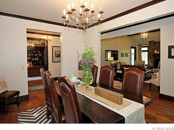Over 1/2 acre in Jenks SE. Beautiful remodel w/rustic transitional theme. Hand-scraped wood floors, exceptional woodwork & beams. New iron front door. 3 FP's. 2 bedrooms down + 2 up. Game room w/wet bar. Kitchen w/hearth room. Huge deck for entertaining!