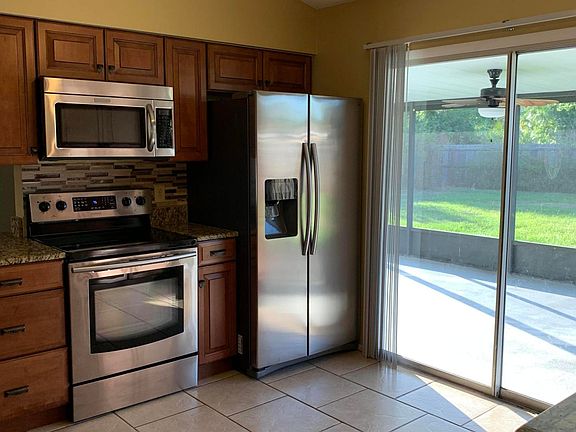 CONTINGENT! Ready to call home, this adorable 3 bedroom, two bath home features an upgraded kitchen with beautiful cherry wood cabinets, granite counters, open floor concept, kitchen leads out to the screened in patio over looking the fenced in yard. Tile though out. Complete with washer and dryer located in the two car garage and additional storage available with the shed in the backyard.