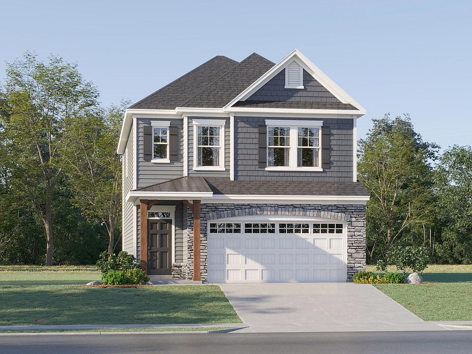 The Chadwick in the Hanover collection at Rosedale. The kitchen overlooks the casual dining and great room providing an open feel for your entertaining needs. Homeowners enjoy the walk-in pantry just off the garage entry a perfect location to drop off supplies after the days shopping is complete. Screened porch offers a retreat after a busy day. Bedroom 2 and bedroom 3 are located at the front of the second floor and have good separation for the owners suite. Loft space add to the flexibility of the home. Owners suite includes a trey ceiling and a large walk-in closet. Rosedale includes a large community pool. Pickleball courts and access to the future Wake Forest Greenway trail system.