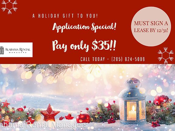 Home for Rent in Lake Cyrus Available to View NOW 1/2 Security Deposit & 1 MONTH FREE! - Beautiful 3 bedroom, 2 bath, 2 car garage in Lake Cyrus Subdivision! Open floor plan, great for entertaining. Large kitchen with granite counter tops and tons of cabinet space, and spacious living room with cathedral ceilings! Upstairs guest bedroom with full bath. Pets allowed. LEASE AND MOVE IN BY 12/10/2019 AND PAY ONLY 1/2 SECURITY DEPOSIT (CONDITIONS APPLY) ON A 12-MONTH LEASE security deposit reflected in market rent AND... CHOOSE FROM THE FOLLOWING INCENTIVES ON A 15-MONTH LEASE: 1. 1 MONTH RENT FREE (CONDITIONS APPLY) AND 1/2 SECURITY DEPOSIT - MUST LEASE AND MOVE IN BY 12/20/2019 OR... 2. A $1600 GIFT CARD (CONDITIONS APPLY) AND 1/2 SECURITY DEPOSIT - MUST LEASE AND MOVE IN BY 12/20/2019 *Bonus Amenity Included* A portion of the resident's total monthly amount due will be used to have HVAC filters regularly delivered to their doorstep under the Utility & Maintenance Reduction Program. This saves 5-15% on your energy bill and helps ensure a clean, healthy living environment and lease compliance. **Square footage is approximate. Resident to verify schools & utilities: Alabama Power, Bessemer Utilities Water Works (water & sewer). The security deposit for the rental home is equal to the monthly rent amount. The application fee (nonrefundable) is $60 per applicant. Any adult that plans to live in the home must apply. The security deposit is what holds the property for you, and is only refundable for a period of 48 hours. If you place a security deposit on the rental home, you and any adult that will be living in the home must apply by midnight of the same day, or the home will go back on the market and the security deposit be placed on hold. Failure to provide the needed documentation for ARM to complete your application in the 72 hour time period will result in the application being placed on hold and the home will go back on the market. Alabama Rental Managers is a leader in the Birmingham Property Management and Rental market. Give us a call today to schedule a viewing! Check out our FAQ's for more information about our rental policies and application process.com (RLNE3101946)