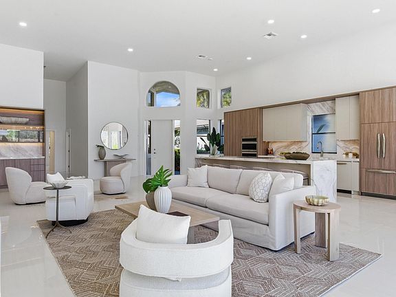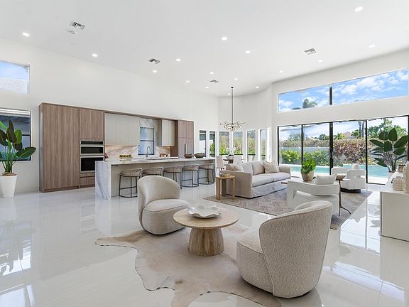 Recently reimagined from top to bottom, this single-story residence delivers effortless elegance across 3 bedrooms, 3 baths, & 2,477 sq ft of refined living. Vaulted ceilings and walls of hurricane-impact glass flood the interiors with natural light while providing peace of mind and energy efficiency.At the heart of the home, a bespoke kitchen showcases panel-ready appliances, marble surfaces, and a custom bar area--designed as much for entertaining as for everyday living. Sleek porcelain flooring extends throughout, unifying the space with a clean, contemporary aesthetic. The primary suite offers a spa-inspired bath & custom closets thoughtfully designed for both function and style. Brand-new impact windows & doors, 2 new AC systems installed in 2025, & all new appliances. More below: Outdoors, the renovated pool and private backyard create a quiet retreat ideal for relaxed afternoons or intimate gatherings.