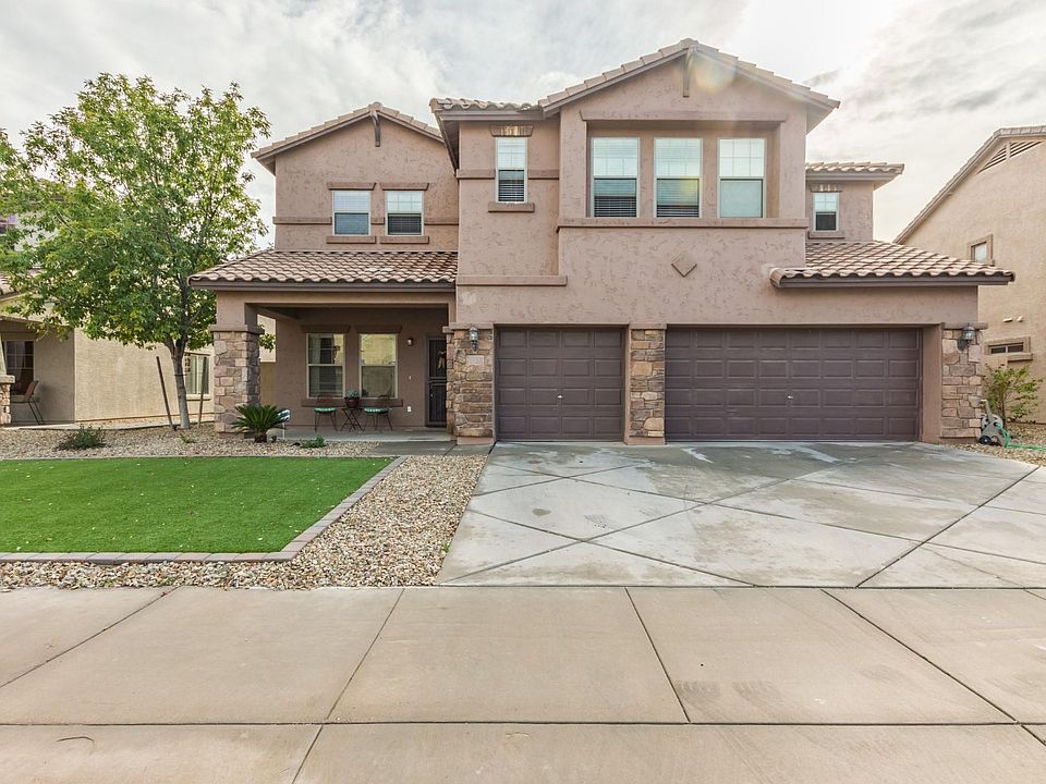 Absolutely stunning Laveen 5 bedroom, 4 bath home available in a great location! Desirable floorplan is perfect for entertaining, with plenty of room for friends and family, boasting a formal living room as well as a spacious, open kitchen and family area with pristine flooring and lots of natural light. Gorgeous kitchen features stainless appliances and a breakfast bar. Huge pantry also has a refrigerator, Large upstairs loft is perfect for a game or media room. Two master bedrooms with baths upstairs with a bedroom/bath downstairs makes this perfect for multi-generational living. Master baths have separate tub and shower. The huge backyard is a desert oasis with a covered patio, lush landscaping and a sparkling pool. Click on more... You will find plenty of reasons to enjoy the outdoors under the covered patio anytime of the year. Convenient location just off of Baseline Rd and within easy reach of Fry's, Starbucks and multiple other shopping and dining options. This home offers everything you need at an amazing value. Make it yours today!