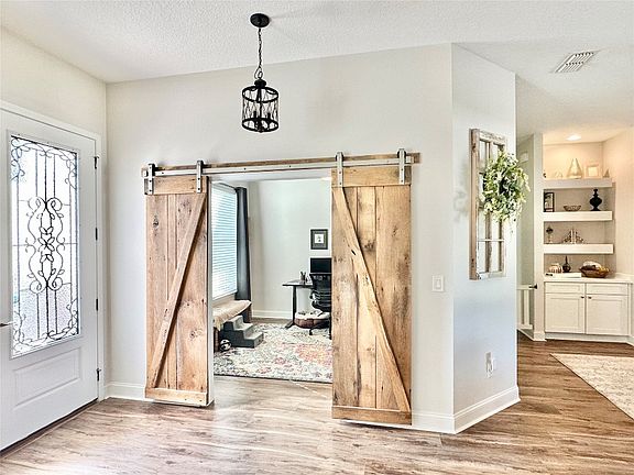 Welcome to your dream home nestled in the highly desirable Spring Lake Estates. This stunning custom-built home offers the perfect blend of comfort, functionality, and freedom—all set on a spacious, fully fenced 1-acre lot with no HOA. Thoughtfully designed split-bedroom floor plan with many custom design upgrades. The home features gorgeous luxury vinyl plank flooring throughout, and a spacious living area centered around a cozy gas fireplace, perfect for relaxed evenings at home. A versatile bonus room with a stunning custom barn door makes the ideal home office, craft room, or guest space—tailored to fit your needs. Enjoy warm Florida days in your above-ground pool, or tackle any project in the 20x40 aluminum workshop, fully wired with a 220V outlet—perfect for the woodworker or DIYers. Bring your RV or boat! This property features a 50-amp RV hookup with dedicated parking space, plus an oversized driveway with a double entry gate-plenty of room for extra vehicles or trailer. Easy access to the interstate, JIA Airport & River City Marketplace & nearby top-rated schools.