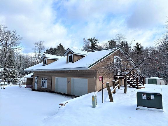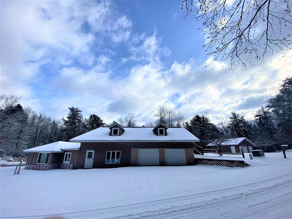 Find your place to call home for adventures into the Northwoods of Wisconsin! Located on Muskie Creek right out your door is this spacious 1 1/2 story, 2 bedroom home for you to call your vacation get-a-way or year round residence. The main level features a cozy living room with free-standing wood burning fireplace overlooking the creek, kitchen/dining rooms and main floor bedroom and bath. Besides the bedroom on upper level, there is a very roomy bathroom with handicap accessible shower stall, large room for Office space or living area, and a laundry room. This floor is easily accessible from the outside entrance as it is partly over the attached 2 car garage (27'x22') below. An additional large garage(24'x36') on the property is a great place for storing boats, ATVs and snowmobiles that you will sure to be using as the location to trails and the many lakes in the area is ideal! This home has 175' of frontage on Muskie Creek that provides access to wonderful Birch Lake!