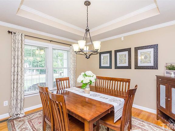 Beautiful RANCH home in established neighborhood with a plethora of items from your wish list...AND on .7 ACRES! HVAC system (5yrs old), HARDWOOD FLOORS, SPA-LIKE MATER BA, DOUBLE VANITY SINKS, WALK-IN CLOSET, SURROUND SOUND, ROCKING CHAIR FRONT PORCH, FLAT and SPACIOUS BACK YARD, TREY CEILINGS, CATHERDRIAL CEILINGS, BACK DECK perfect for entertaining, LAUNDRY ROOM, 2CAR GARAGE, 12' X 16' STORAGE BUILDING. Peaceful setting and only 20 mins. from downtown Raleigh!