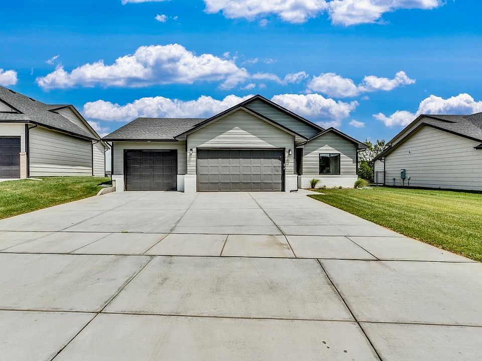 Back by Popular Demand – The Sterling Plan by RJ Castle Custom Homes! Experience luxury, comfort, and convenience all in one beautifully designed zero-step home. This 4-bedroom, 2-bathroom stunner offers thoughtful design and high-end finishes throughout. The expansive main living area welcomes you with tray ceilings, an elegant electric fireplace, and abundant natural light pouring through large windows and a walk-out to a spacious covered patio—perfect for enjoying serene views of mature trees and one of the neighborhood’s picturesque lakes. The gourmet kitchen is a chef’s dream, featuring quartz countertops, extensive cabinetry, a massive walk-in pantry, and a generous dining area perfect for entertaining. Retreat to the master suite with its dramatic beamed ceiling, spa-like bath with low-curb tile shower, and a huge walk-in closet with seasonal hanging space. The oversized 4th bedroom offers incredible versatility—with luxury vinyl plank flooring, a walk-in closet, and a private exterior entrance, it’s ideal as a second living space, in-law suite, or the ultimate man-cave. Two additional spacious bedrooms and a stylish full bath provide room for everyone. A functional drop zone off the oversized 3-car garage and a centrally located laundry room add ease to everyday living. All of this with no steps—modern, accessible living at its finest! Come see why The Sterling Plan continues to be one of RJ Castle’s most loved designs—your dream home awaits! Some information may be estimated and is not guaranteed. Please verify schools with USD 262.