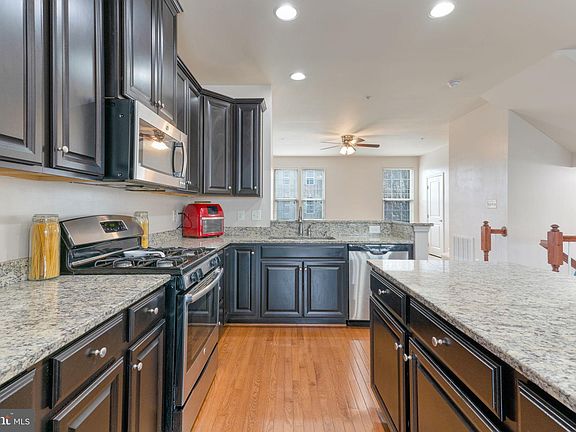 Fantastic end unit townhome with 2 car garage! This is the largest floor plan in Fieldside subdivision with over 2,600 SQ FT of living space! This home has been well-maintained and updated, featuring a NEW roof, NEW HVAC system, NEW flooring and freshly painted interior means you can move right in. This thoughtfully designed property offers two sides of brick for added charm and durability. The main level features a home office/library with privacy doors, a spacious open recreation room, half bath and a large storage room. Walkout access from the main level leads to the backyard and the detached two-car garage. The second level boasts an open floor plan with dramatic 9-foot ceilings and abundant natural light. The living room includes brand-new carpeting, a ceiling fan, and an additional side window. The chef’s kitchen offers an oversized island with a breakfast counter, granite countertops, stainless steel appliances, 42-inch cabinets, and recessed lighting. Hardwood floors span the kitchen, dining area, and family room. The breakfast nook features a sliding glass door that opens to a maintenance-free vinyl deck. A convenient half bath with a new toilet completes this level. Upstairs, the home offers three bedrooms, including a spacious owner’s suite with a large walk-in closet. The owner’s suite bathroom has been updated with a raised vanity, granite countertops, a soaking tub with tile surround, a step-in shower, and tile flooring. The two additional bedrooms are in great condition and share a hall bathroom with tile flooring. The upper level also includes a laundry room with a full-sized, front-load washer and dryer, and carpeting throughout. Simply a must see!