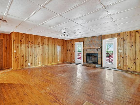Wooded acresSeparate carportNewer french doorsInviting front porchLarge primary suitePine wood wallsBeautiful wood paneling
