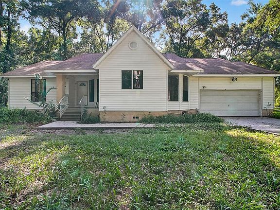 Home full of Rustic charm - PRICE REDUCED!!! PLEASE CONTACT REALTOR FOR ACCESS TO THE LOT / PROPERTY This spacious 2,000 sq. ft. home, built in 1999, sits on nearly 5 wooded acres, offering plenty of privacy and a true rustic charm. Located about 2/10 of a mile off the highway, you’ll enjoy the peace and quiet of nature—no HOA, no bond—just open space and opportunity to make this home shine again! Inside, you’ll find beautiful wood paneling, pine wood walls and oakwood floors throughout (pine and oakwood came from the trees on property), though the property will need some TLC. The home features 3 bedrooms including a large primary suite with both a tub and shower, plus 2.5 bathrooms. There’s also an oversized 572 sq. ft. attached garage with attic access and a separate carport. Enjoy the outdoors on the large back porch with wood deck, or relax on the inviting front porch during quiet mornings and evenings. The spacious interior includes a huge family room with a fireplace and newer French doors leading to the back porch, a separate dining room, and a large eat-in kitchen. The split floor plan provides privacy, with two bedrooms located on the opposite side of the home from the primary suite. Major updates include a new roof installed in 2019 and HVAC system installed in 2016. Please note: some plumbing under the home was replaced with CPVC piping after breaks occurred, and floor damage is present in the family room and primary bathroom—use caution when viewing. Plumbing at the well has also been recently updated also a new well pump was installed and finally—this is a wooded property! Please be mindful of wildlife, and wear long pants and closed-toe shoes when visiting.