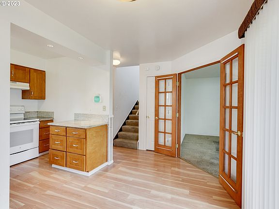 Beautiful townhome in Beaverton. Interior boasts laminate flooring throughout main floor. Quaint French doors lead to the living room featuring tall windows letting in light. Kitchen w/ gorgeous granite countertops & great farmhouse sink. Primary bedroom features a private deck that provides a peaceful place to unwind. Sliding doors from the dining area to the covered patio are perfect for entertaining. Raised garden beds for your gardening passion. Enjoy the pool & rec facilities year round!